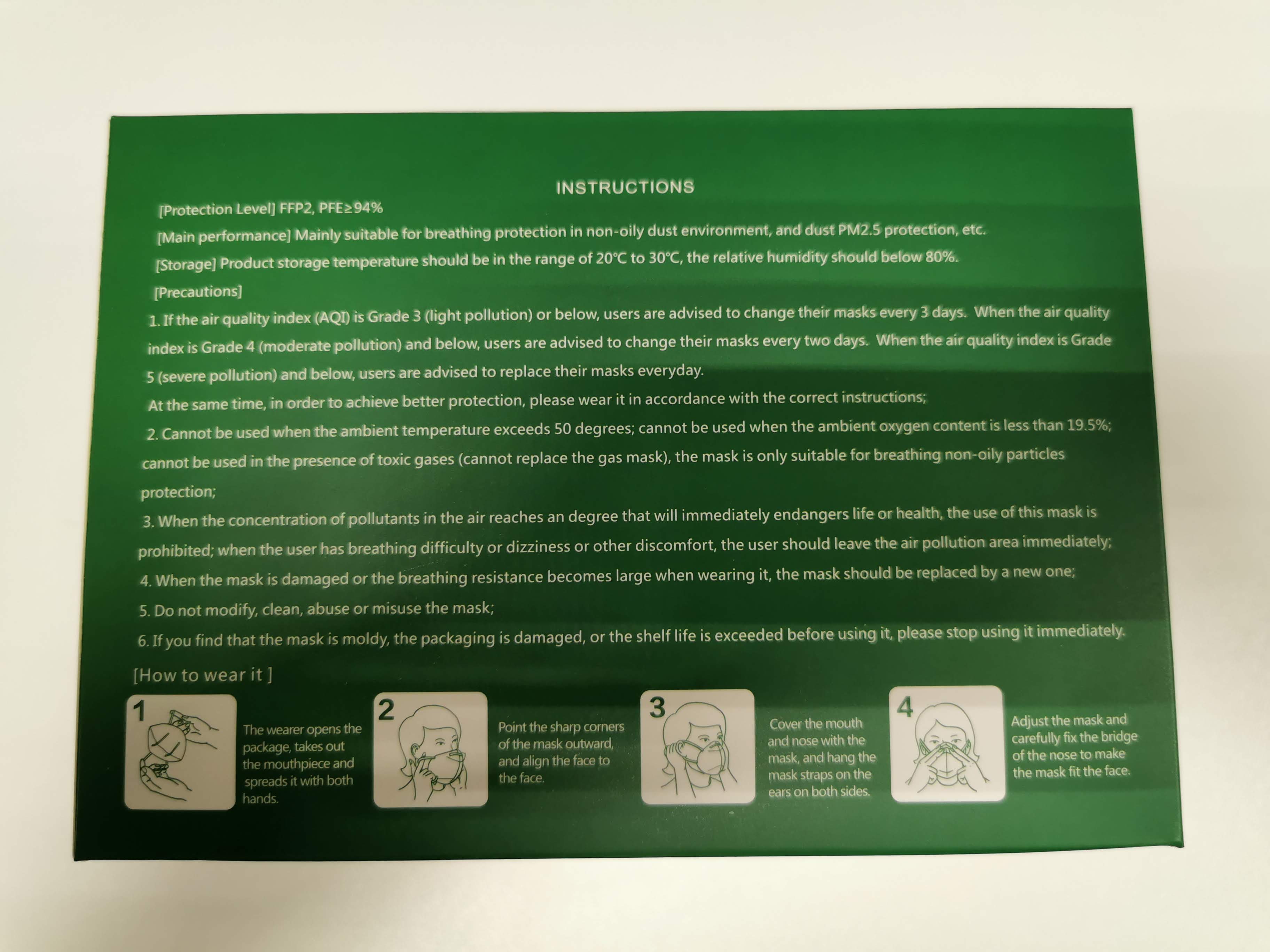 Respirator KN95 (FFP2) safety class - the mask is able to filter more than 94% of airborne particles.