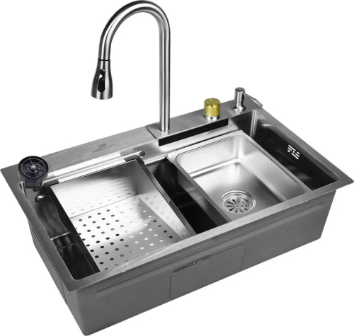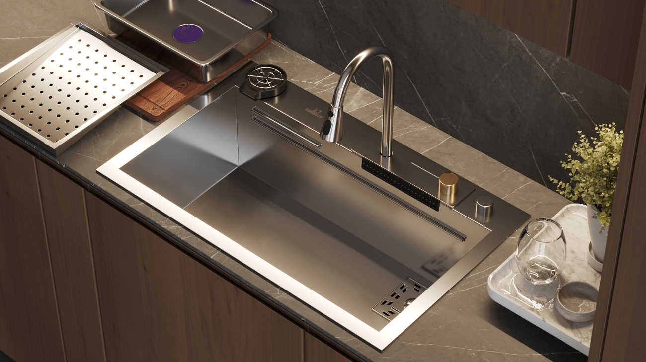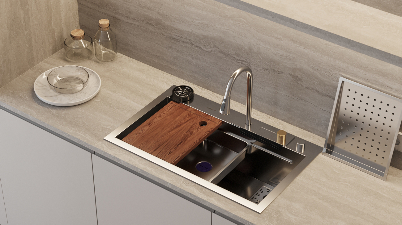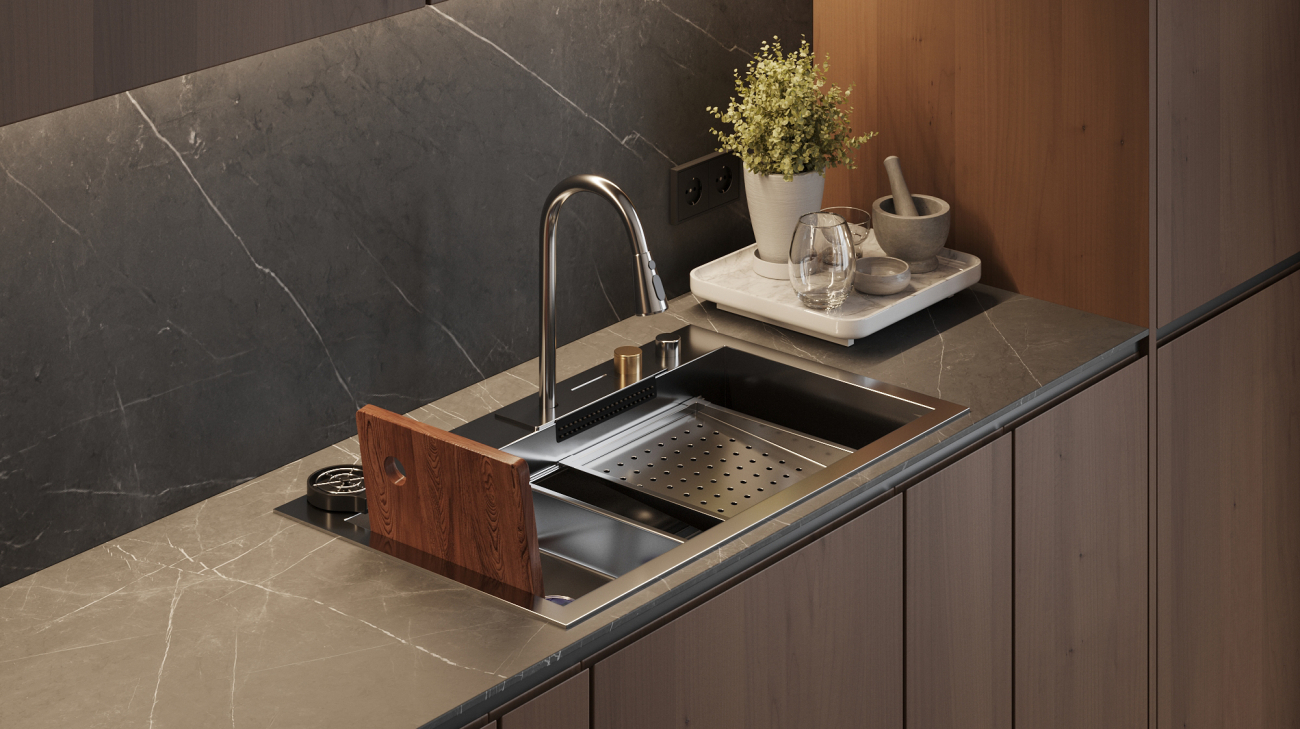 Daudzfunkcionālā virtuves izlietne no nerūsējošā tērauda kļūs par izcilu palīgu jūsu virtuvē. Ar šīs izlietnes palīdzību jūs varēsiet viegli nomazgāt ne vien traukus, bet arī augļus un dārzeņus. Atsaldēšanas trauks ietaupīs vietu uz galda, bet pateicoties izvadatverei ūdens automātiski notecēs izlietnē.