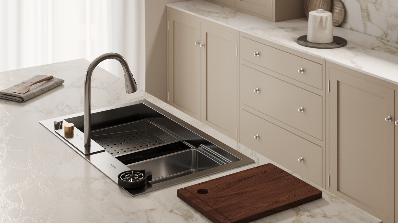 Maisītājs ar elastīgu cauruli ļaus vienkārši noskalot izlietni. Dušas režīms būs ideāli piemērots augļu un dārzeņu mazgāšanai, kurus var ērti ielikt speciālajā kolanderā.