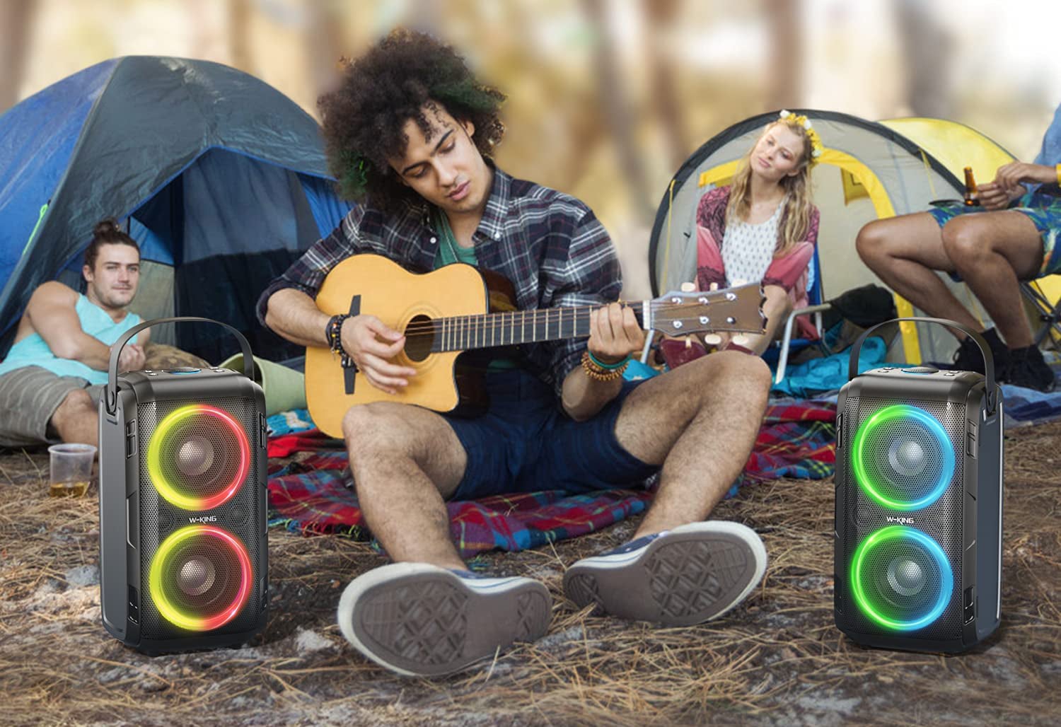 W-KING 80W RMS(100W Peak) portable loud Bluetooth speaker with professional sound effects; penetrates deep into your soul, Follow W-KING Bluetooth Speaker, and Release your stress! Release your anxiety! Burn your passion! Indulge in a wonderful time on endless nights.